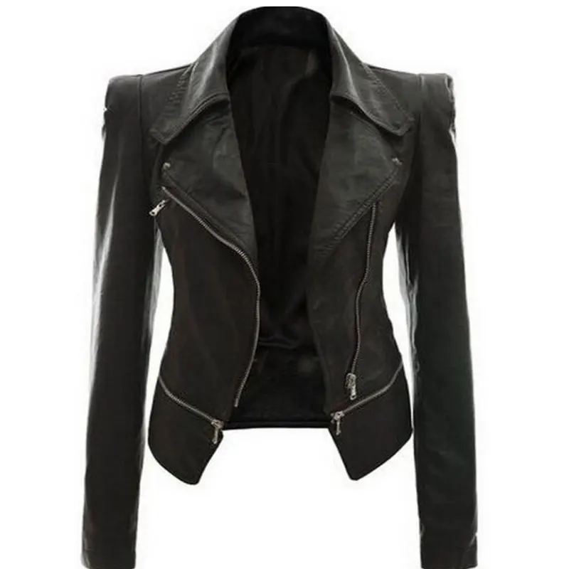 Goede Kopen 2018 Jas HOT Jas Vrouwen Winter Herfst Mode Motorjas Zwart faux lederen jassen Bovenkleding Dropshipping Goedkoop