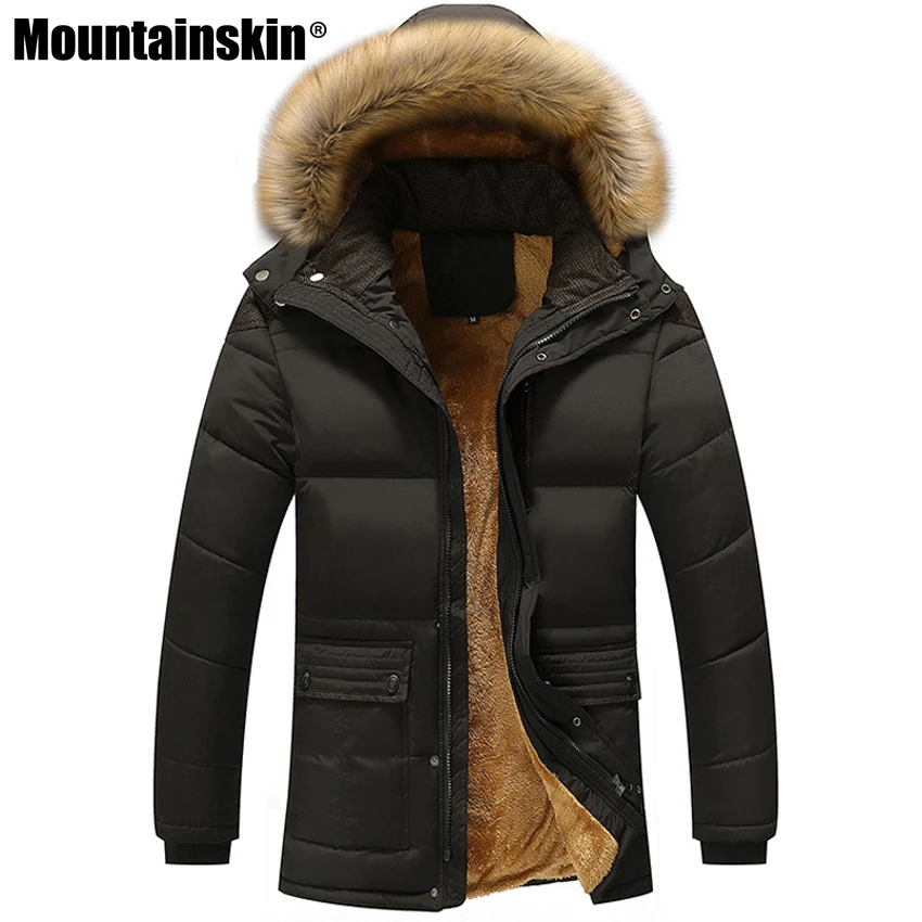 Goede Koop Mountainskin Winter heren Jassen Dikke Fleece 5XL Bontkraag Hooded heren Jassen Casual Jack Mannelijk Bovenkleding Winddicht SA390 Goedkoop