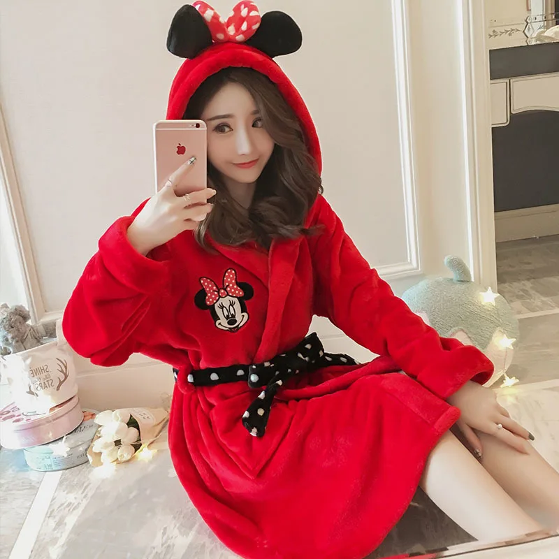 Goede Kopen 2018 nieuwe Winter Vrouwen rode Gewaden Cartoon zoete Nightgowns Homewear Coral Fluwelen Badjas Pyjama Bad Flanel Warm Robe Nachtkleding Goedkoop