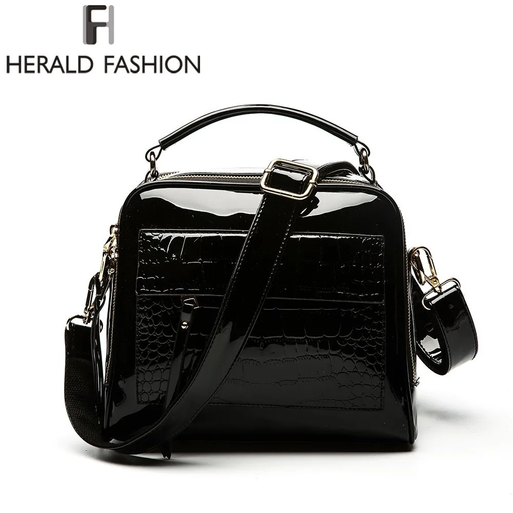 Kopen Goedkoop Herald Fashion Vrouwen Patent Lederen Handtassen Krokodil Ontwerp Shopper Tote Bag Vrouwelijke Luxe Schoudertassen Prijs