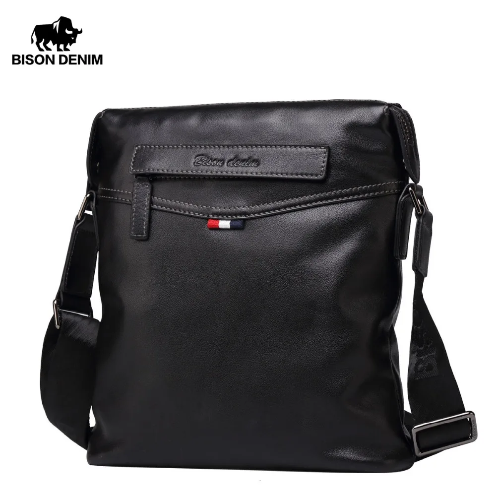 Beste Koop BISON DENIM tas Mannen Klassieke Zwarte Business lederen tas brand crossbody bag designer Schoudertassen N2490 Goedkoop