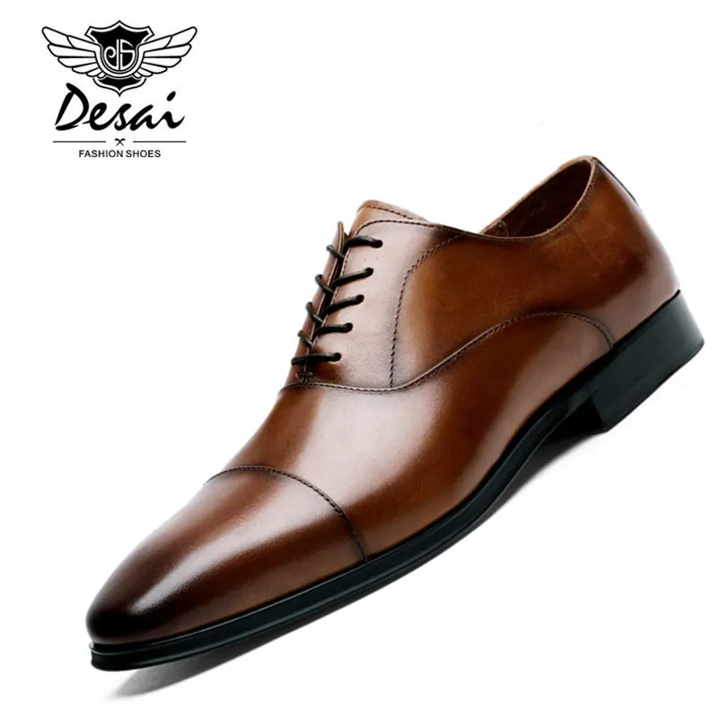 Beste Koop DESAI Merk Luxe Lederen Mannen Formele Schoenen Wees Teen Top Kwaliteit Koe Lederen Oxford Mannen Kleding Schoenen Goedkoop