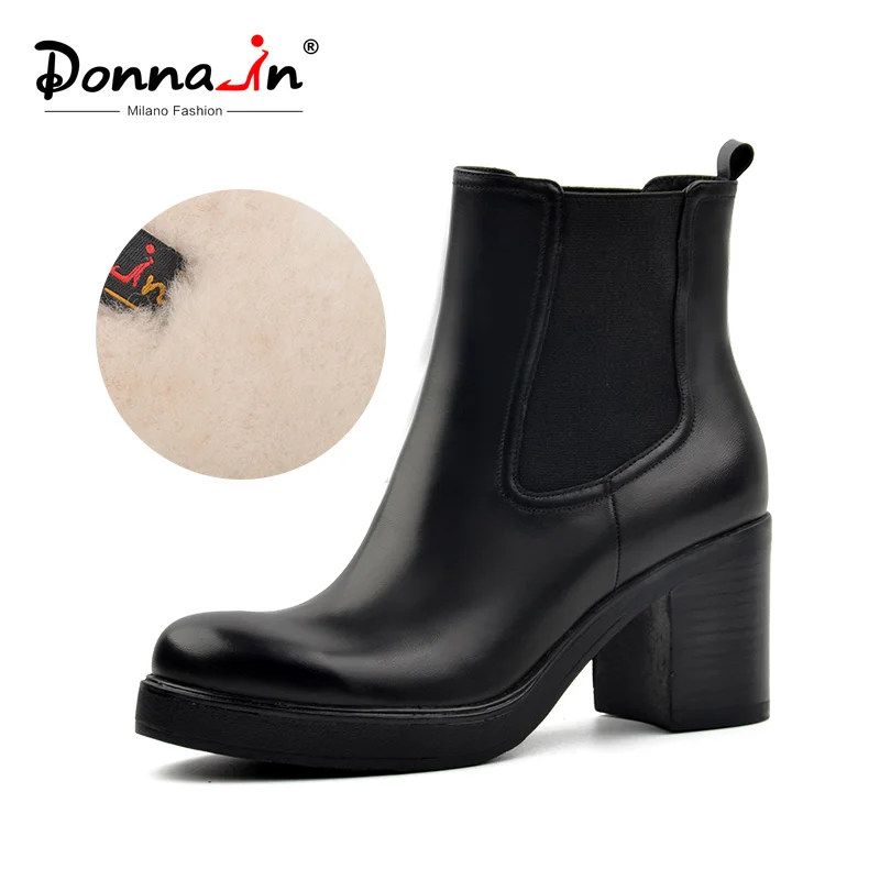 Kopen Goedkoop Donna in vrouwen echt lederen snowboots natuurlijke wol bont binnenzool winter booties platform schoenen hoge hakken Chelsea enkel laarzen Online