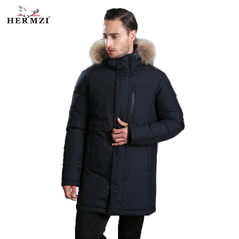 Kopen Goedkoop HERMZI 2018 Nieuwe Mannen Down Jas Mode Winter Down Jas Lange Parka Thicken 80% Eendendons Wasbeer Bontkraag 30C Gratis Verzending Prijs