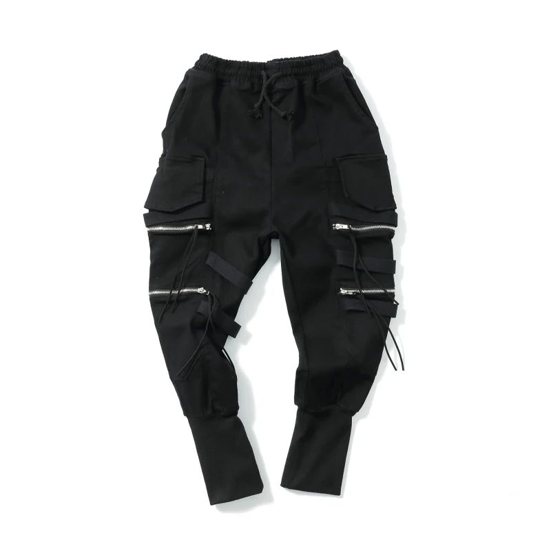 Goede Kopen 2017 mannen Rits Multi pocket Joggingbroek streetwear mode Effen zwart nieuwe Hiphop Joggers Broek Mannen casual Cross broek Goedkoop