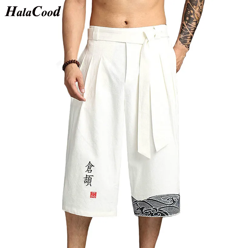 Goede Koop Fashion Sexy mannen Breed Been Broek Mannelijke Linnen Cropped Broek losse Zomer Casual Broek Chinese Stijl Wilde Tij Katoen Linnen broek Goedkoop