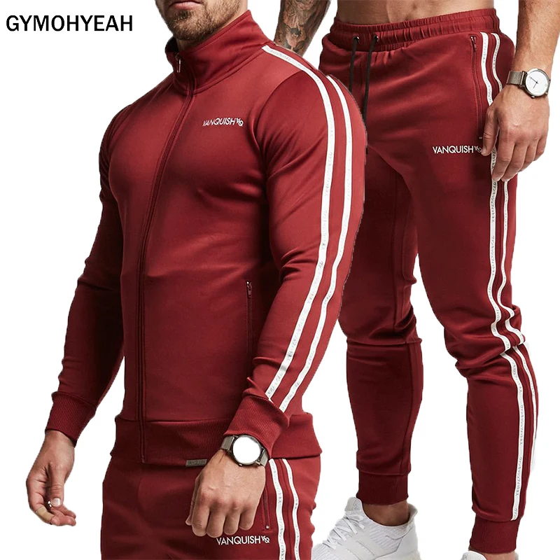 Kopen Goedkoop GYMOHYEAH merk merk sporting pak mannen Pak Mannen Hoodies Sets Heren Sportscholen Sportkleding Jogger Pak Mannelijke Trainingspak sets Prijs