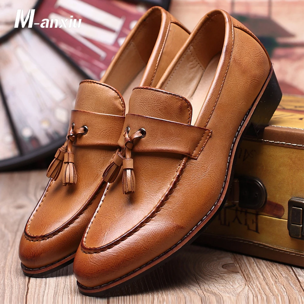 Kopen Goedkoop M anxiu Mannen Schoenen Mode Lederen Doug Casual Flat Kwasten Slip On Driver Jurk Loafers Puntschoen Moccasin bruiloft Schoenen Prijs