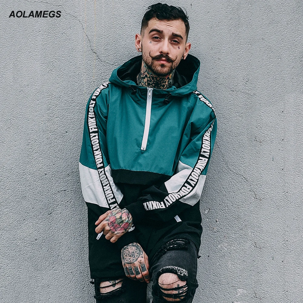 Kopen Goedkoop Aolamegs Mannen Hoodies Fashion Harajuku Losse Hoody Tops Windjack Jeugd Paar Contrast Kleur Hip Hop High Street Wear Trui Online