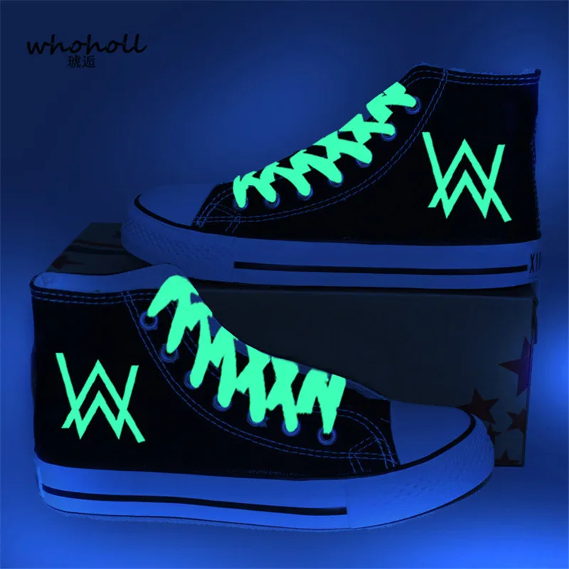 Kopen Goedkoop 2018 Lente Vrouwen Canvas Schoenen Fluorescentie Alan Walker DJ Hoge Top Canvas Schoenen vrouwen Schoenen Paar Vulcaniseer Vulcaniseer Schoenen Online