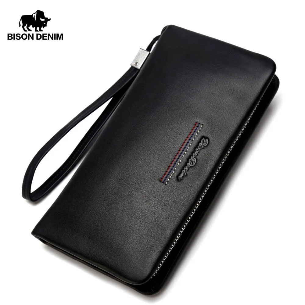 Beste Kopen BISON DENIM Mannelijke Clutch Echt Lederen heren Portemonnee Lange Portemonnee Merk Koeienhuid Kaarthouder Portemonnee Mannen Zakelijke Portemonnee n8069 Goedkoop