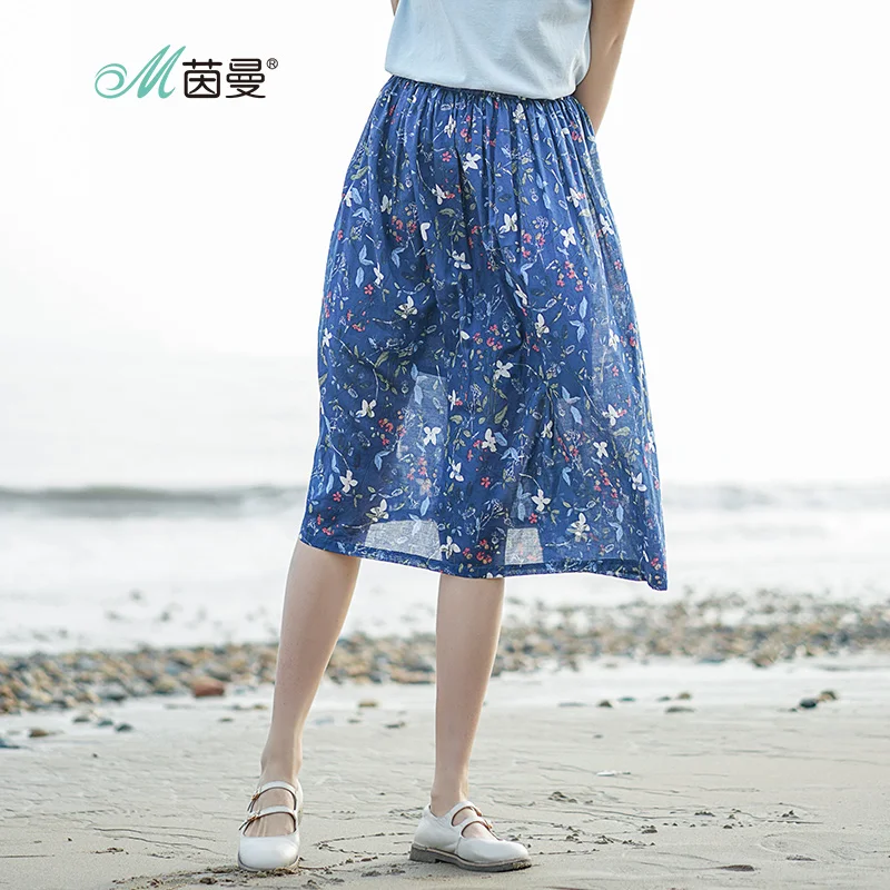 Beste Koop INMAN vrouwen 2017 nieuwe Katoen Bloemen Printing bloemen medium lange rokken Goedkoop