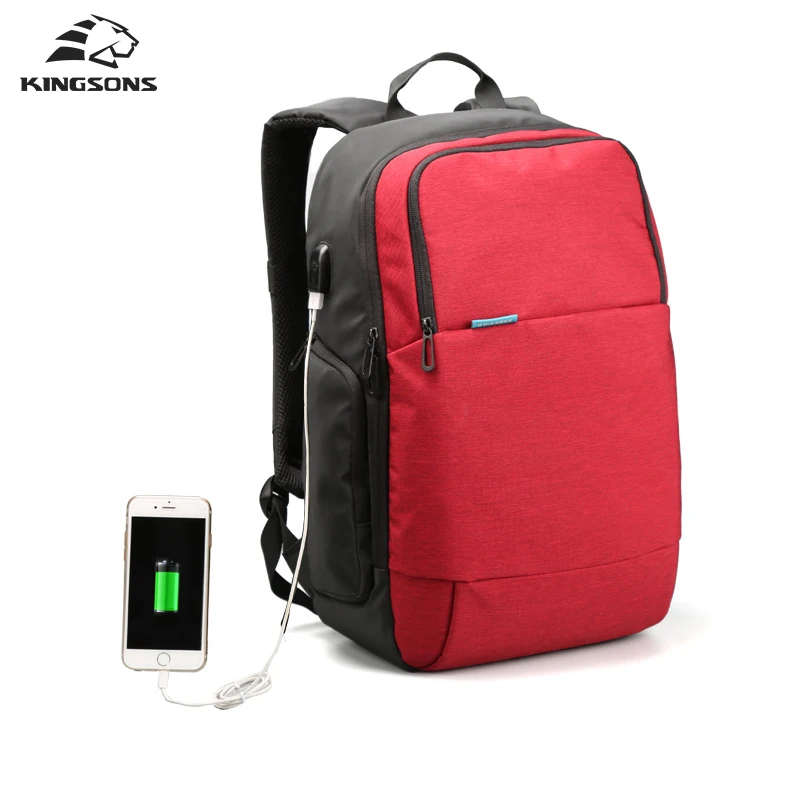 Beste Koop Kingsons Merk Externe USB Charge Rugzak Anti diefstal Computer Tas 15.6 inch Solid Mannen Casual Daypacks Goedkoop