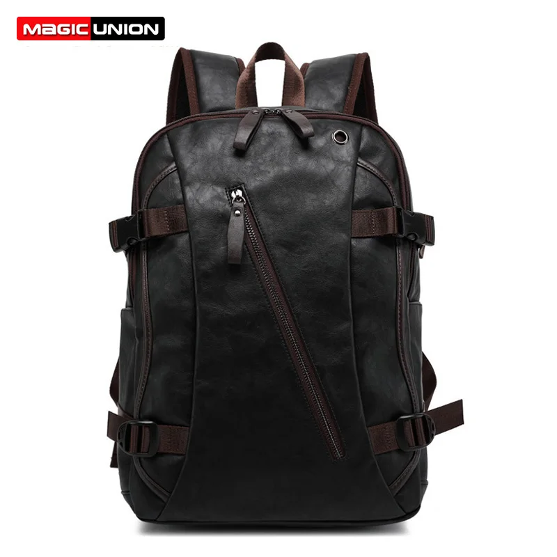 Goede Koop MAGIC UNION Mannen Olie Wax Lederen Rugzak mannen Casual Rugzak amp; Reistassen Westerse College Stijl Man Rugzakken Mochila zip Mannen Goedkoop