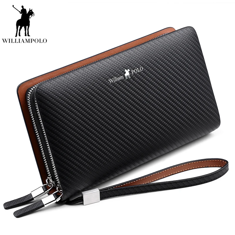 Kopen Goedkoop WilliamPOLO 2018 Mode Nieuwe Aankomst 100% Koe Lederen Business Effen Rits Lange Heren Clutch Portemonnee Mannelijke Handtas Portemonnee PL170 Prijs