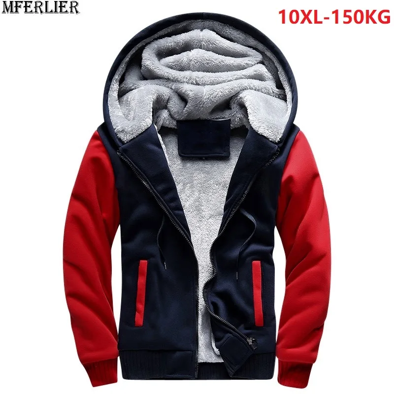 Goede Kopen Plus grote maat grote mannen Sweatshirts 8XL warme fleece dikke hooded hoodies winter hipster SportWear patchwork 9XL 10XL rits jas Goedkoop