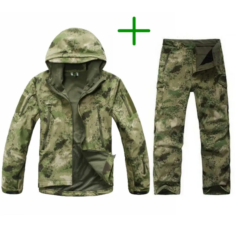 Beste Kopen TAD Tactische Mannen Leger Jacht Wandelen Vissen Verkennen Kleding Pak Camouflage Shark Skin Militaire Waterdichte Capuchon + Broek Goedkoop.