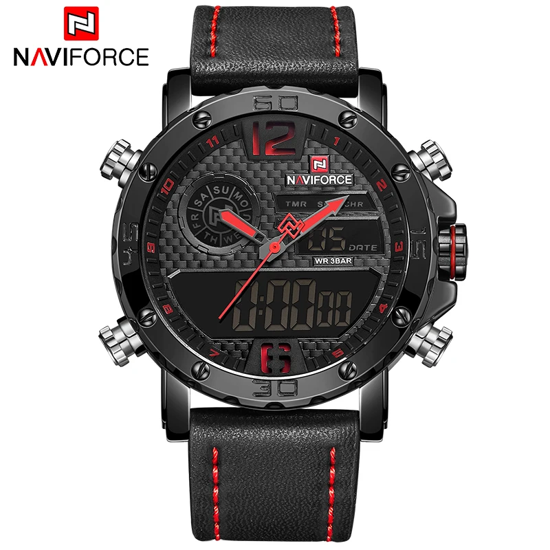 Kopen Goedkoop Horloges Mannen NAVIFORCE Merk Mannen Sport Horloge mannen Lederen Quartz Militaire Horloge Mannelijke Led Analoge Digitale Klok Relogio Masculino Online