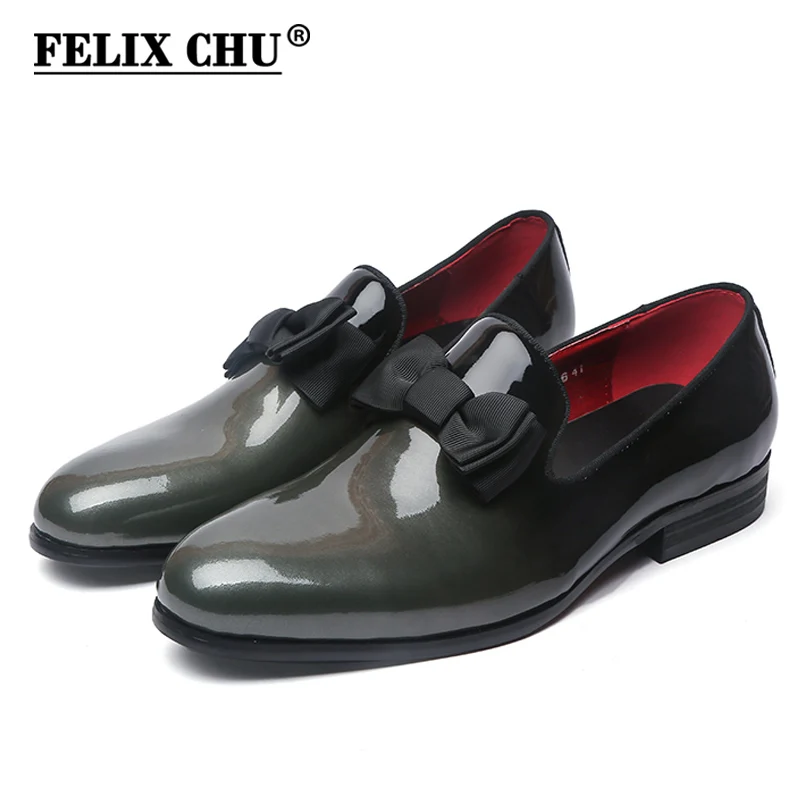 Kopen Goedkoop FELIX CHU Brand Luxe Echt Lakleer Mannen Trouwjurk Schoenen Met Strikje mannen Banket Party Formele Instappers # D509 6 Prijs