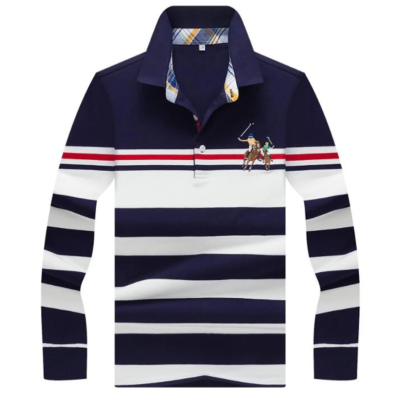 Goede Kopen Herfst winter nieuwe polo shirt Hoge kwaliteit merk katoen mannen polo shirt Business casual gestreepte Solid shirt polo mannen Goedkoop