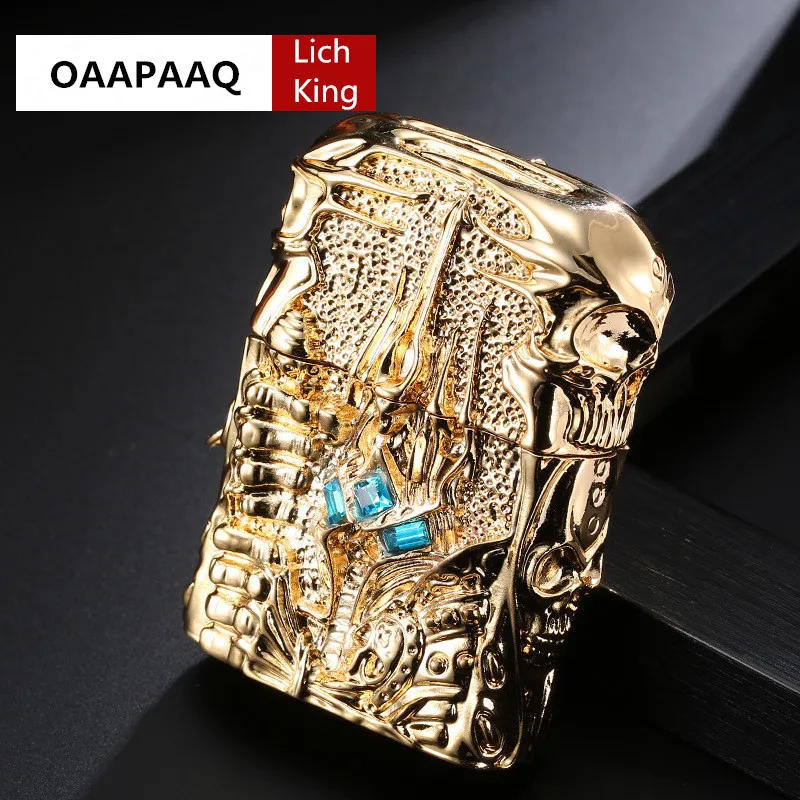 Beste Koop Zuiver Koper Lichter Mannen Gadgets Wereld van Warcraft Kerosine Olie De Lich King Relief Lichter Kerosine Sigaret Retro Tabak Goedkoop