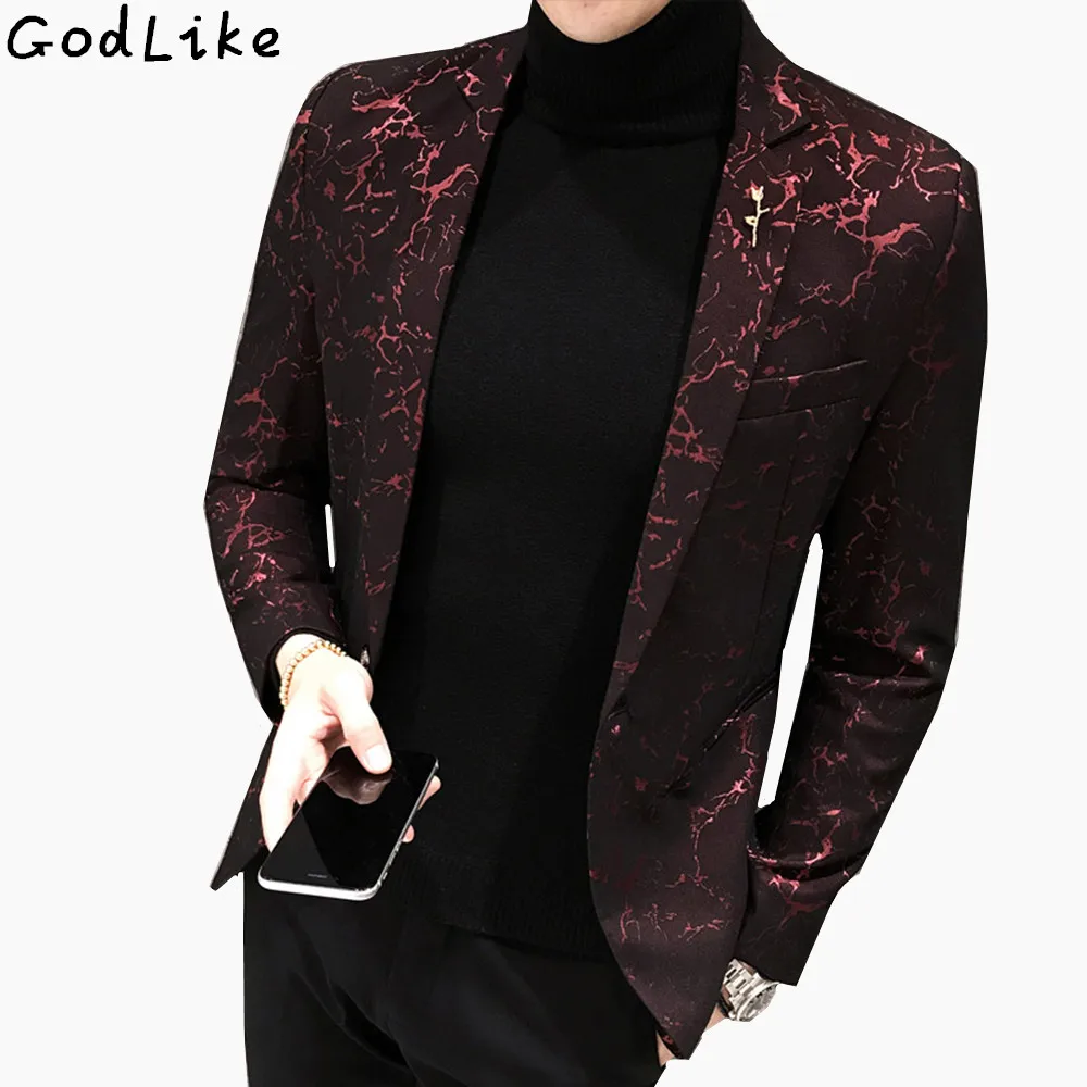 Beste Koop Slanke bleiser masculino 2017 Winter Casual Fit Bloemen Pak Heren Bloem Blazer Feestjurk Outfit Pantalon Trendy blaser masculino Goedkoop