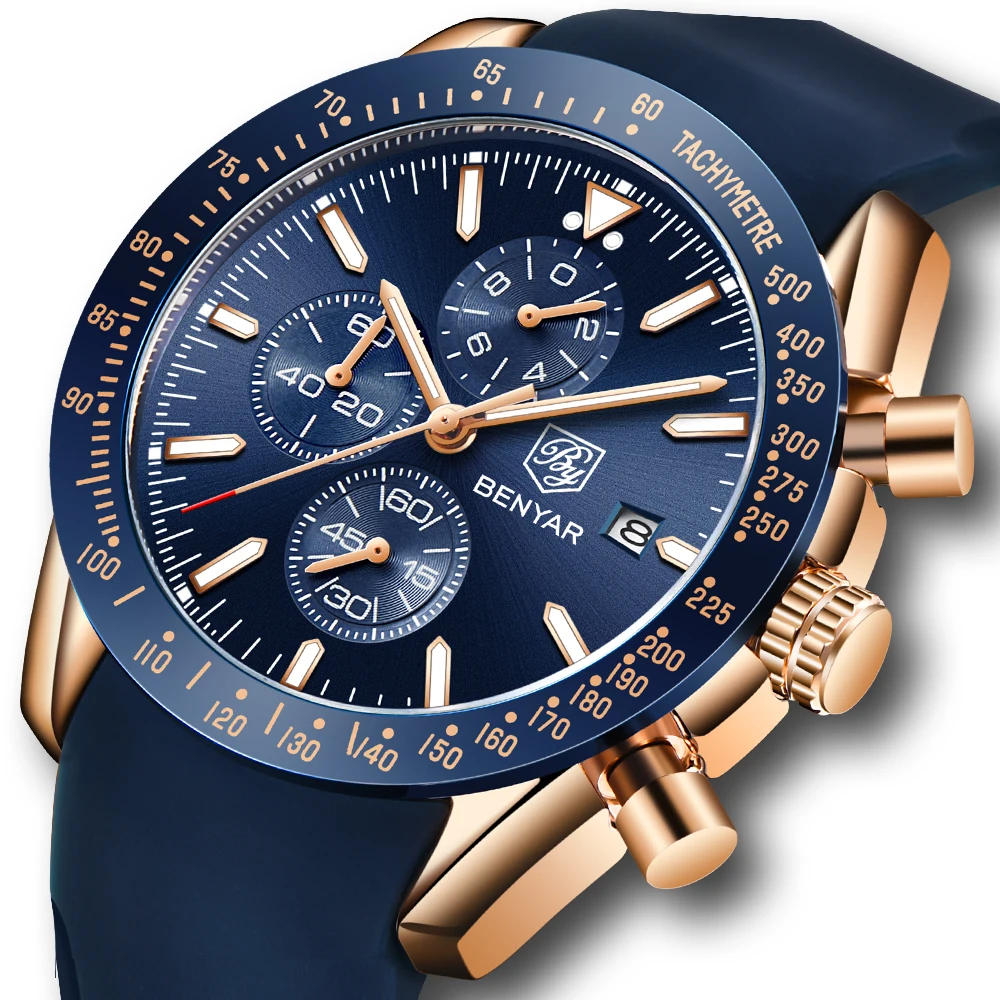 Beste Kopen BENYAR Mannen Horloges Merk Luxe Siliconen Band Waterdichte Sport Quartz Chronograaf Militaire Horloge Mannen Klok Relogio Masculino Goedkoop