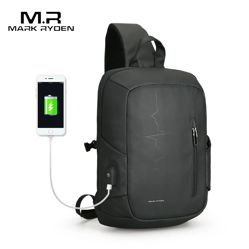 Beste Koop Mark Ryden 2018 Nieuwe USB Opladen Sling Tas Grote Capaciteit Oxford Crossbody Bag mannen Schoudertas Waterbestendig Borst pack Goedkoop