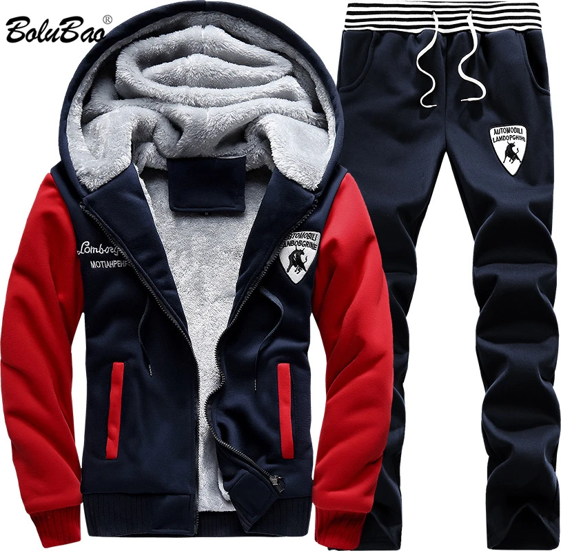 Goede Koop BOLUBAO Casual Heren Trainingspak Set Winter Tweedelige Sets Polyester Fleece Dikke Capuchon + Broek Sporting Pak Mannelijke Goedkoop