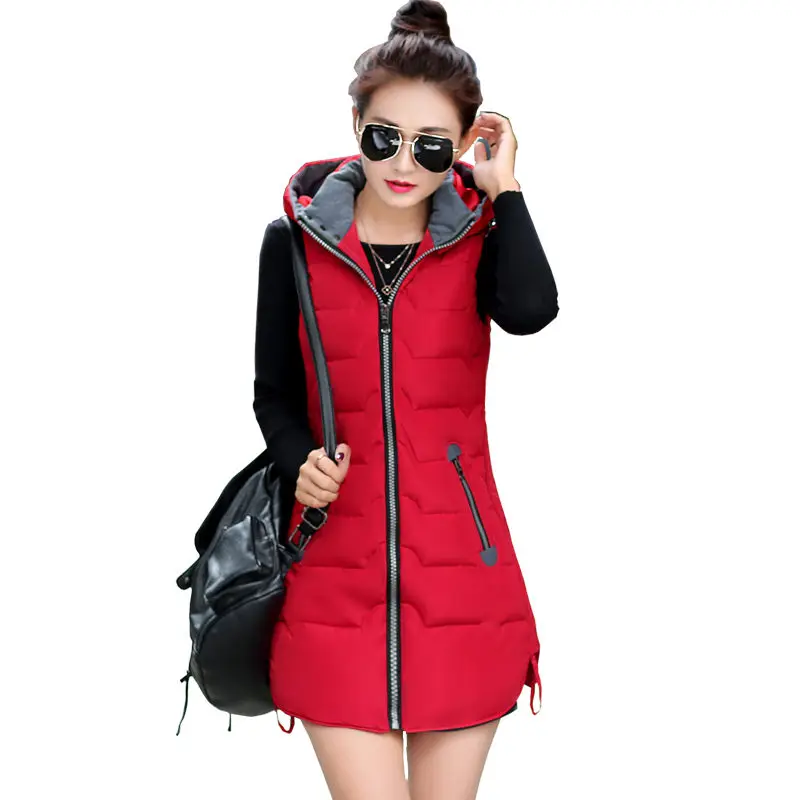Beste Koop Herfst Winter Vest Vrouwen Vest 2018 Vrouwelijke Mouwloze Jas Kap Warm Lange Vest Jas Colete Feminino Plus Size 5XL C3727 Goedkoop