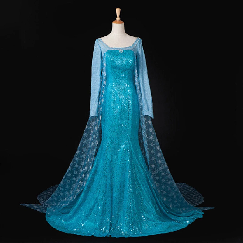 Beste Kopen Elsa Kostuum Volwassen Prinses Jurk Cosplay Halloween Voor Vrouwen Party Formele Goedkoop