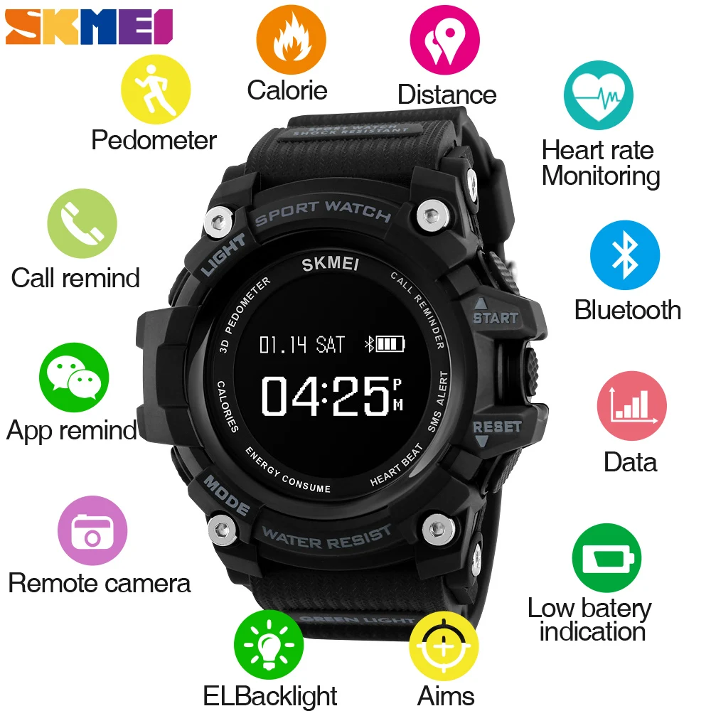 Beste Kopen SKMEI Smart Horloge Mannen Hartslag Sport Bluetooth Horloges Stappenteller Calorie Digitale Horloge Relogio Masculino voor ios android Goedkoop