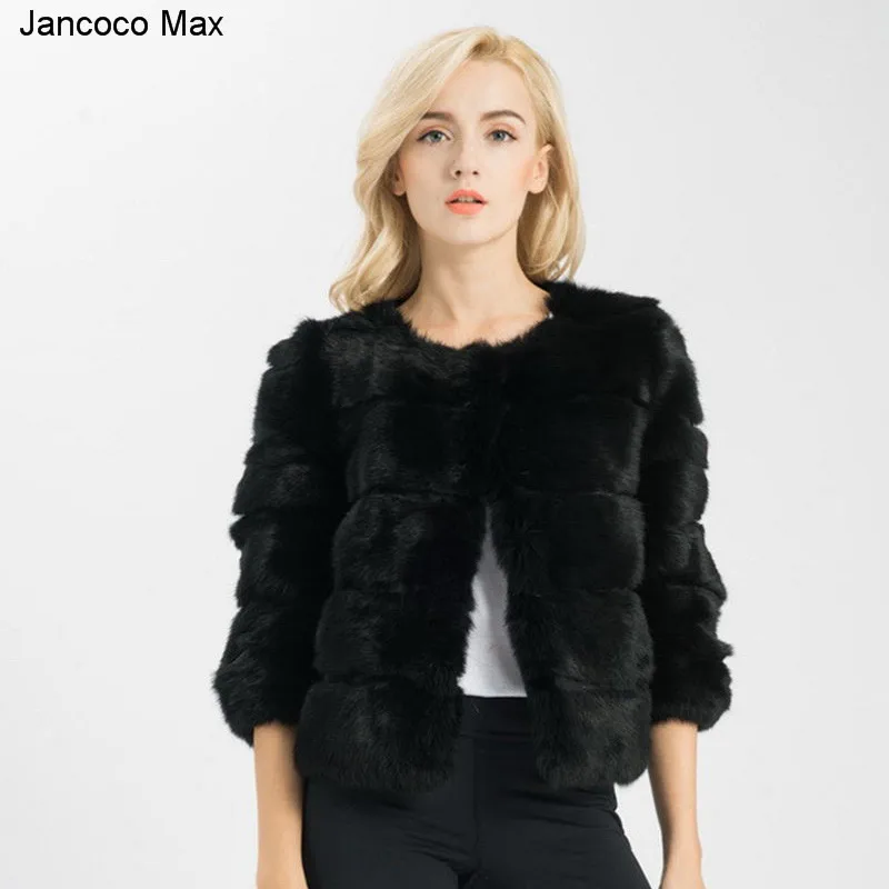 Kopen Goedkoop Jancoco Max 2018 Nieuwe Vrouwen Real Rabbit Fur Jacket Winter 3 4 mouwen Hoge Kwaliteit Bovenkleding Mode Stijl Korte Jas S1538 Prijs