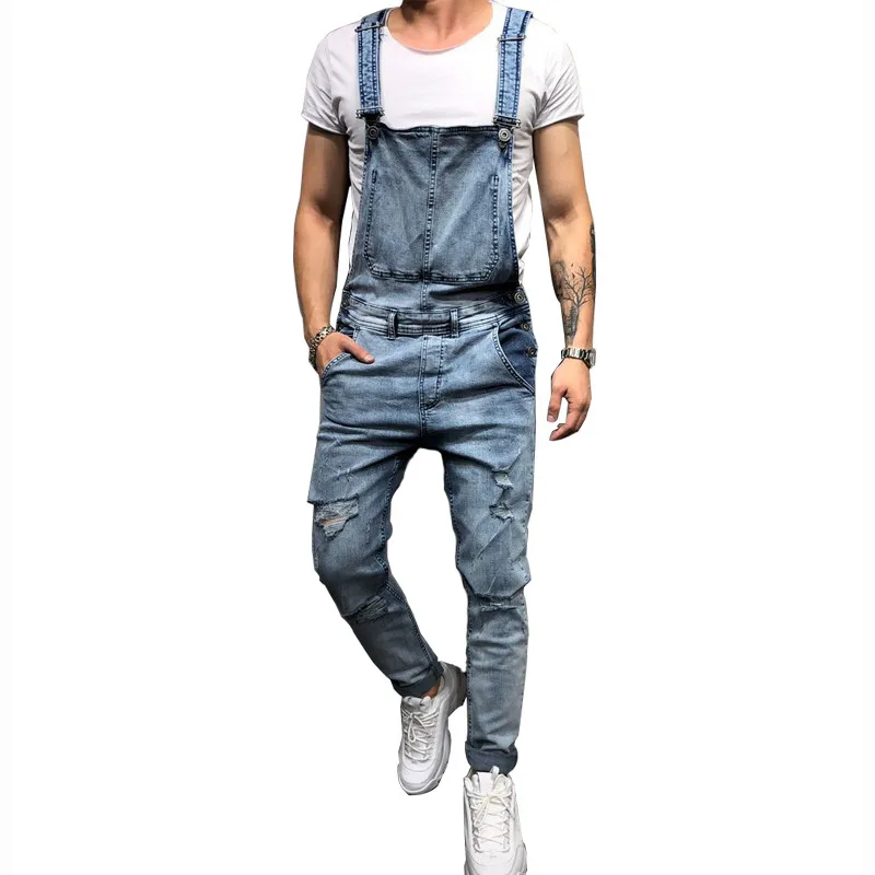 Goede Koop MORUANCLE Mode mannen Gescheurde Jeans Jumpsuits Hi Straat Verontruste Denim Bib Overalls Voor Man Jarretel Broek Maat S XXXL Goedkoop