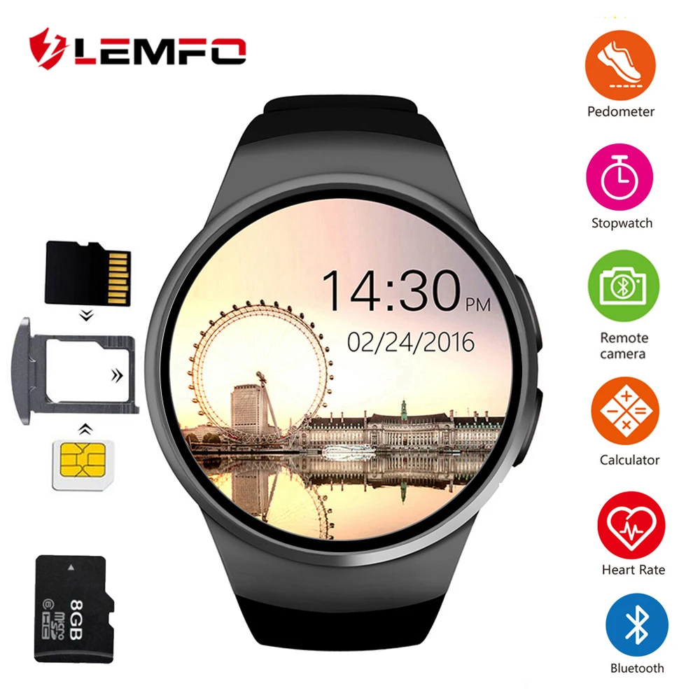Goede Kopen LEMFO KW18 Smart Horloge Mannen Ondersteuning SIM TF Card Bluetooth Call Hartslag Stappenteller Sport Modi Smartwatch Voor Android IOS Goedkoop