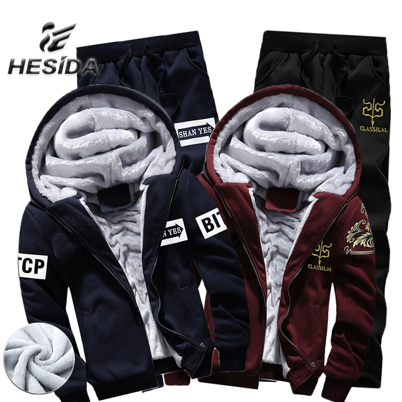Kopen Goedkoop Homme Survetement Sweatshirt Warm Sport Pak Mannen Fur Hoodies Sportkleding Dikke Twee Pc Set Trainingspak Voor Heren Sport Jas Winter Prijs