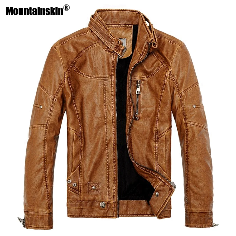 Goede Kopen Mountainskin 2018 Winter mannen Leren Jassen Casual Mannen Vintage Motorfiets PU Faux Jas Mannelijke Moto Jassen Merk Kleding SA086 Goedkoop