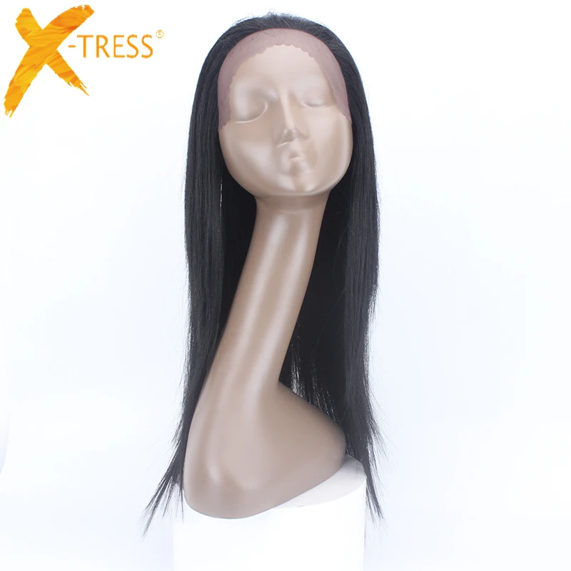Goede Koop Lange Rechte Lace Front Synthetisch Haar Pruiken Voor Vrouwen X TRESS Gratis Deel Natuurlijke Zwarte Kleur 1B Haar Pruik Hittebestendige lijmloze Goedkoop