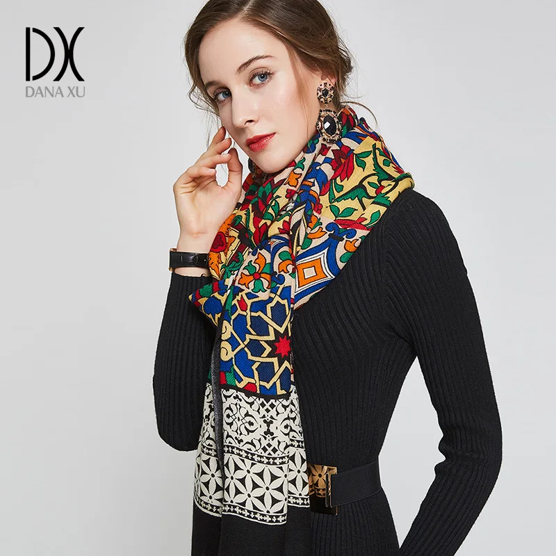 Goede Kopen 100% Wol Vierkante Hoofd Sjaals Vrouwen Elegante Dame Carf En warme Sjaal Lange Animal Print Stola Bandana Sjaal Hijab Strand deken Goedkoop