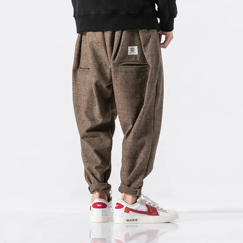 Goede Kopen 3 kleur Mannen Winter Dikke Warme Wollen Casual Plaid Harem Broek Mannelijke Losse Mode Broek Streetwear Hip Hop Broek Plus size M 5XL Goedkoop