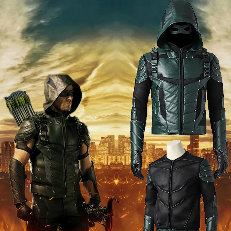 Kopen Goedkoop Green Arrow Oliver Queen Cosplay Kostuum Green Arrow Seizoen 5 Superhero Kleding Mannelijke Halloween Leer Kostuum Volwassen Mannen Jas Prijs