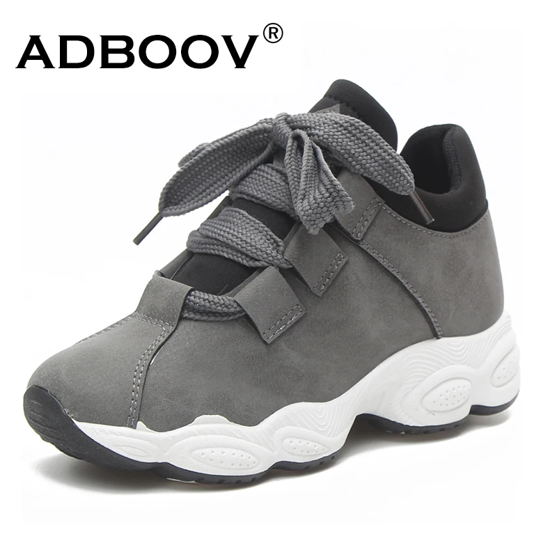 Goede Koop ADBOOV Herfst Winter Platform Sneakers Vrouwen Varken Su egrave;de Comfortabele Casual Schoenen Vrouw Koreaanse Fashion Zapatos De Mujer Grijs Zwart Goedkoop