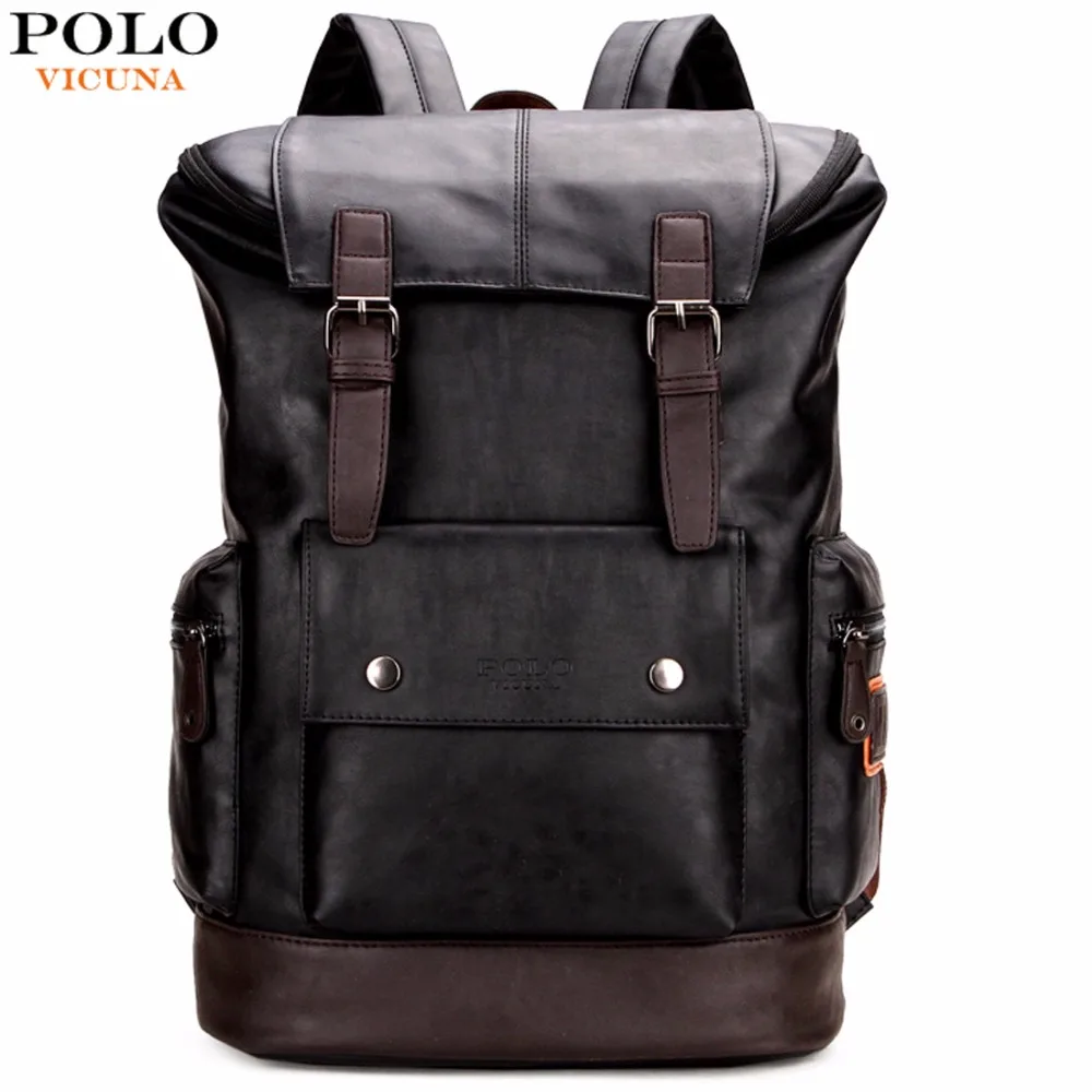 Beste Kopen VICUNA POLO Eenvoudige Patchwork Grote Capaciteit Heren Lederen Rugzak Voor Reizen Casual mochila Mannen Daypacks Lederen Travle Rugzak Goedkoop