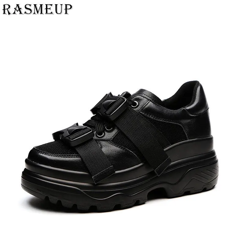 Beste Koop RASMEUP Echt Leer Mesh Vrouwen Platform Chunky Sneakers 2018