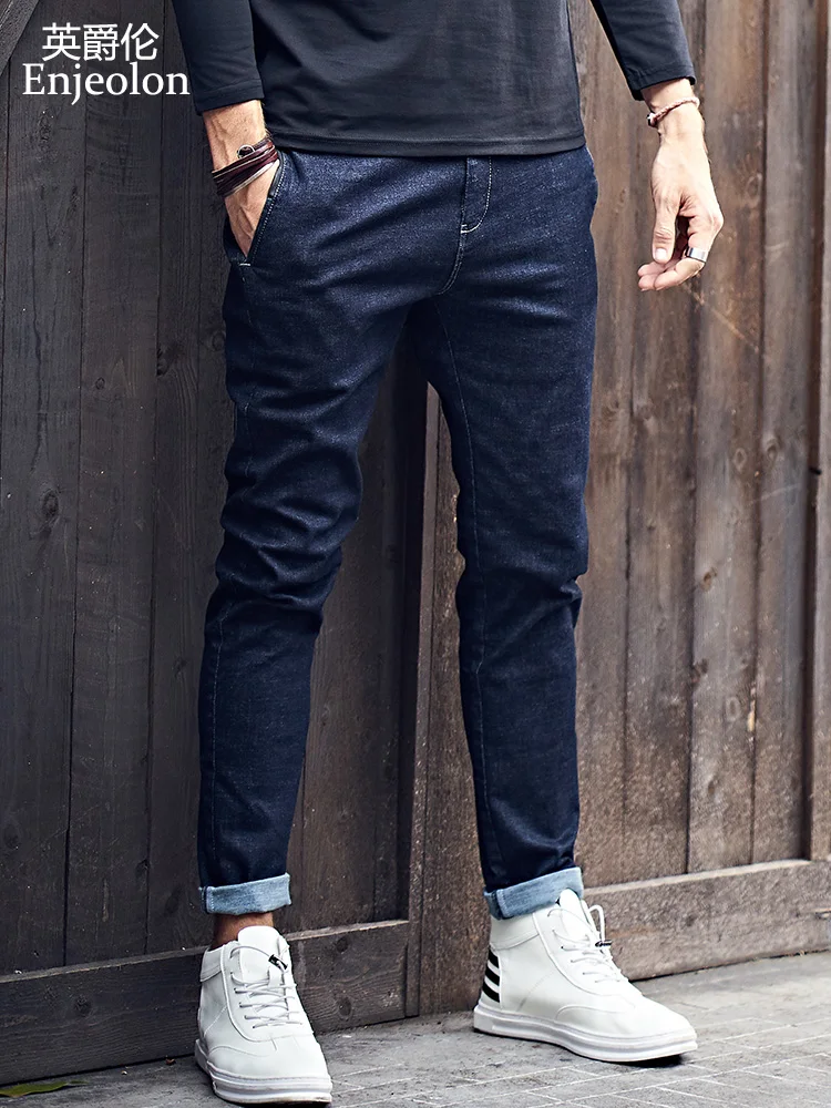 Kopen Goedkoop Enjeolon merk top qualiry hoogwaardige volledige lengte jeans mannen mode lange broek Rechte jeans mannetjes Causale Broek KZ6141 Prijs