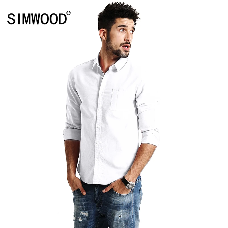 Kopen Goedkoop SIMWOOD 2018 Nieuwe Herfst Casual Shirts Mannen Lange Mouwen 100% Pure Katoen Slim Fit Plus Size Hoge Kwaliteit Oxford Twill shirt CS1597 Prijs