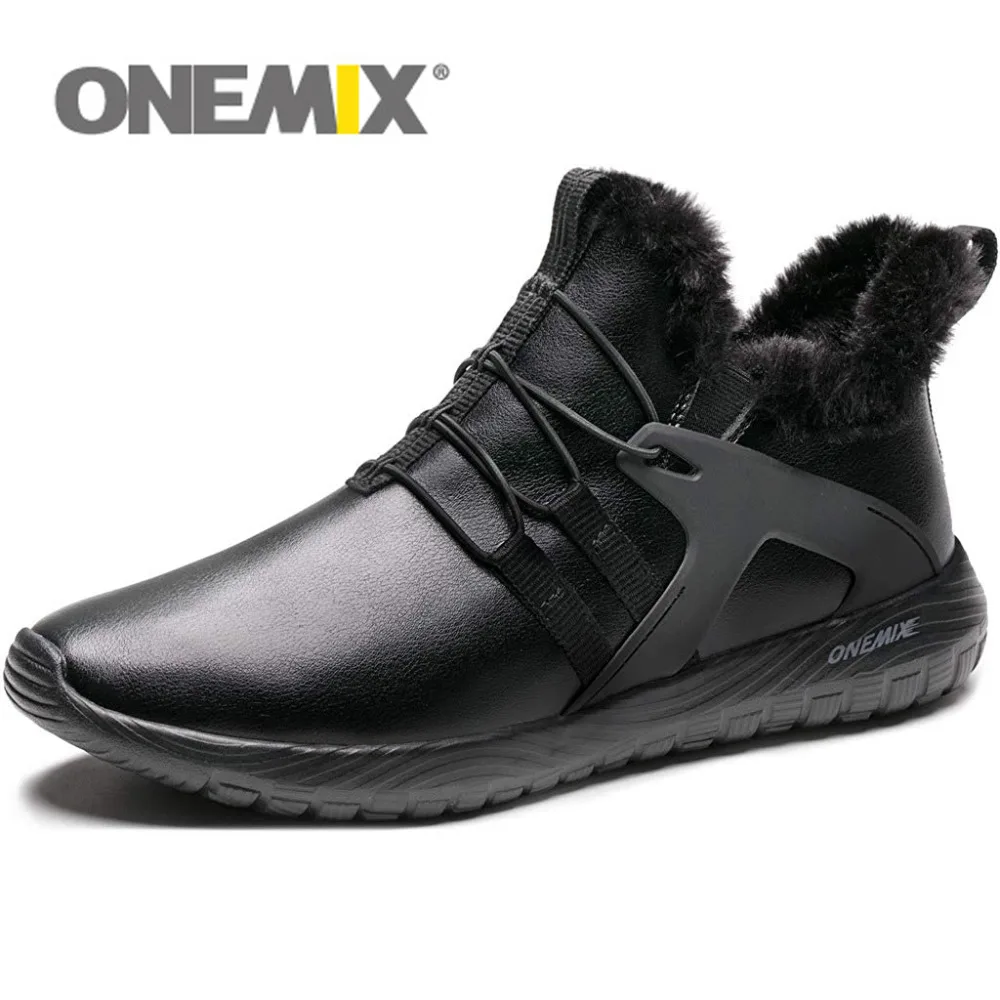 Goede Koop ONEMIX Mannen Loopschoenen Zwart Warm Winter Sneakers Slip Op Comfortabele Outdoor Wandelschoenen Goedkoop