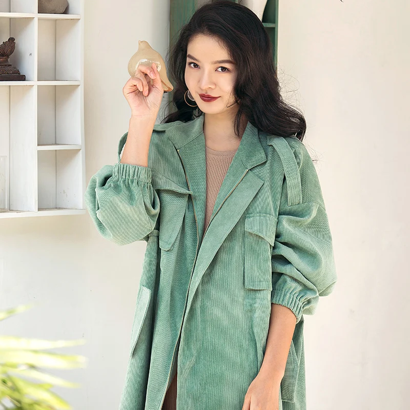 Nieuwe Collectie Kleding Blauw Groen Overjas Lange Trenchcoat Plus Size