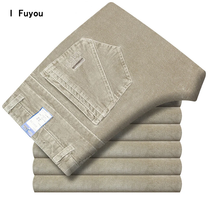 Beste Koop Herfst en winter Corduroy broek mannen business casual broek losse elastische middelbare leeftijd rechte broek thicken corduroy broek Goedkoop