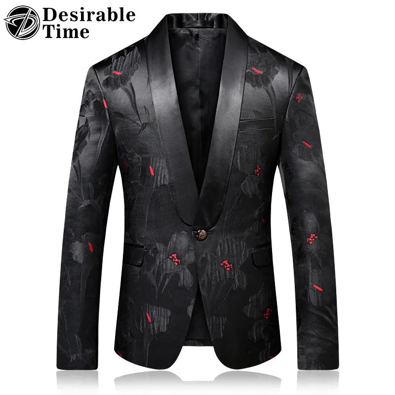 Goede Kopen 2018 Mode Heren Gedrukt Blazers Casual Slim Fit Prom Jurk Blazer Mannen Zwart Bloemen Stage Wear Blazers Jas voor Mannen DT313 Goedkoop